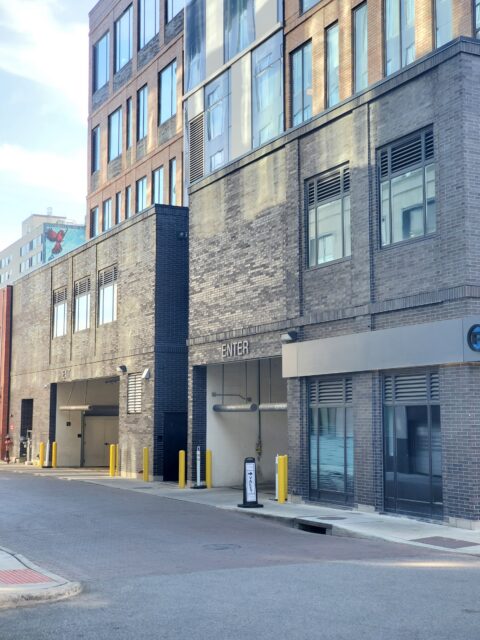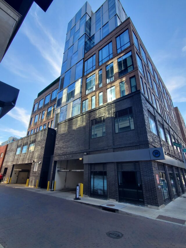 800 N High Street is a Citrin valet-assisted parking garage that utilizes a car elevator to move vehicles between different levels.