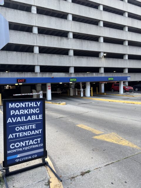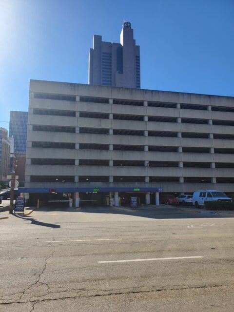 Eight-story parking garage located in the heart of Columbus, right off of Long St. Surface parking lot near a variety of downtown businesses.
